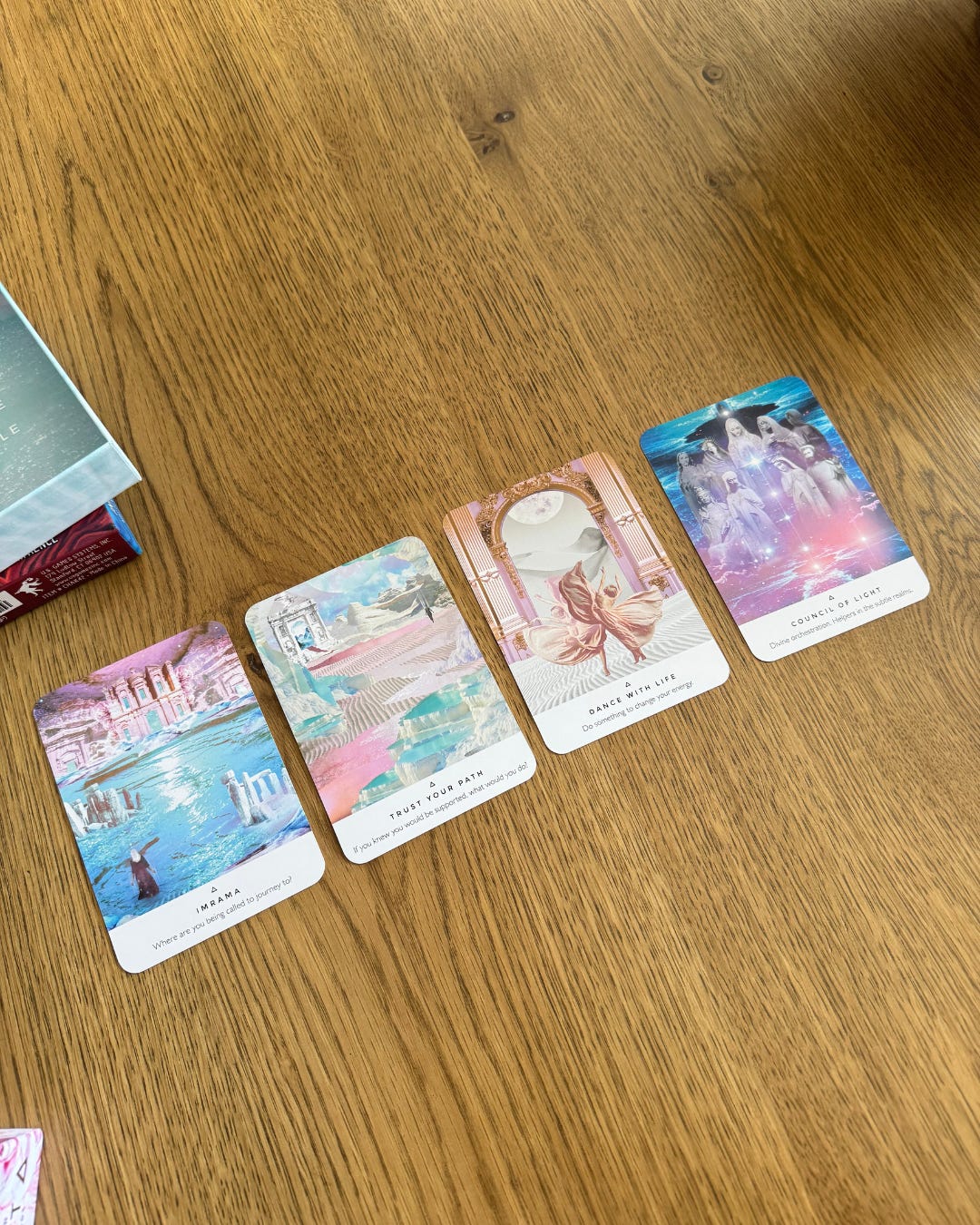 When pulling the cards between the Work Your Light oracle deck by Rebecca Campbell and the Infinite Wisdom of the Chakras oracle deck written by Alison Denicola and Art by Dhra Lawrence, I noticed each one is a repeat from past readings.